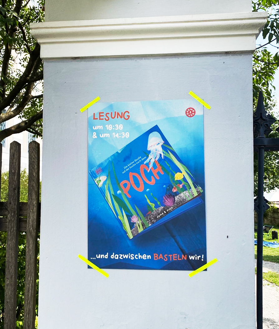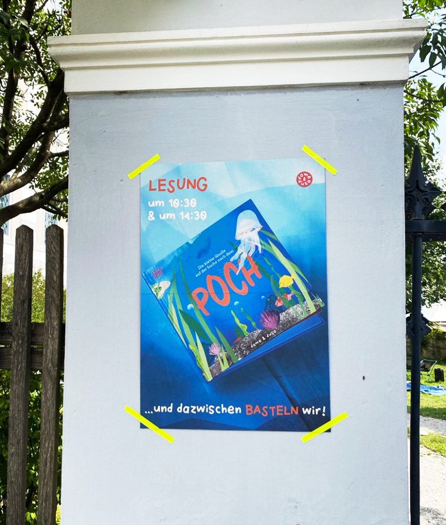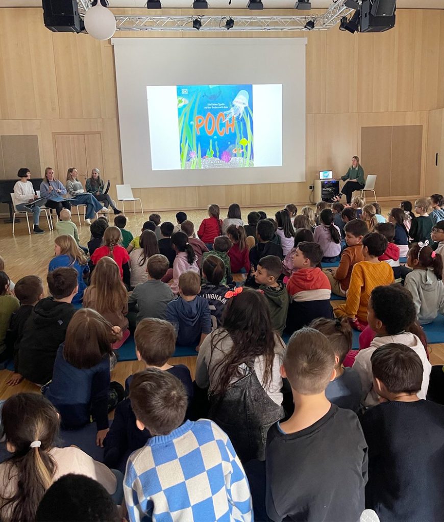 Unsere Lesung zu „Die kleine Qualle auf der Suche nach dem POCH“ verbindet Vorlesen, Einblicke in den kreativen Entstehungsprozess und künstlerisches Gestalten.