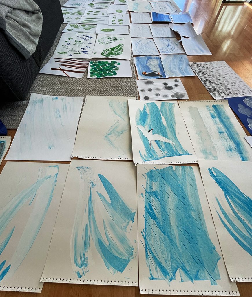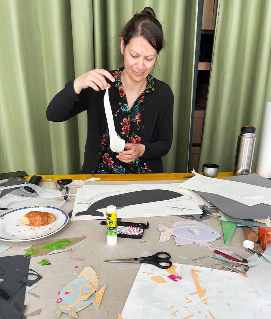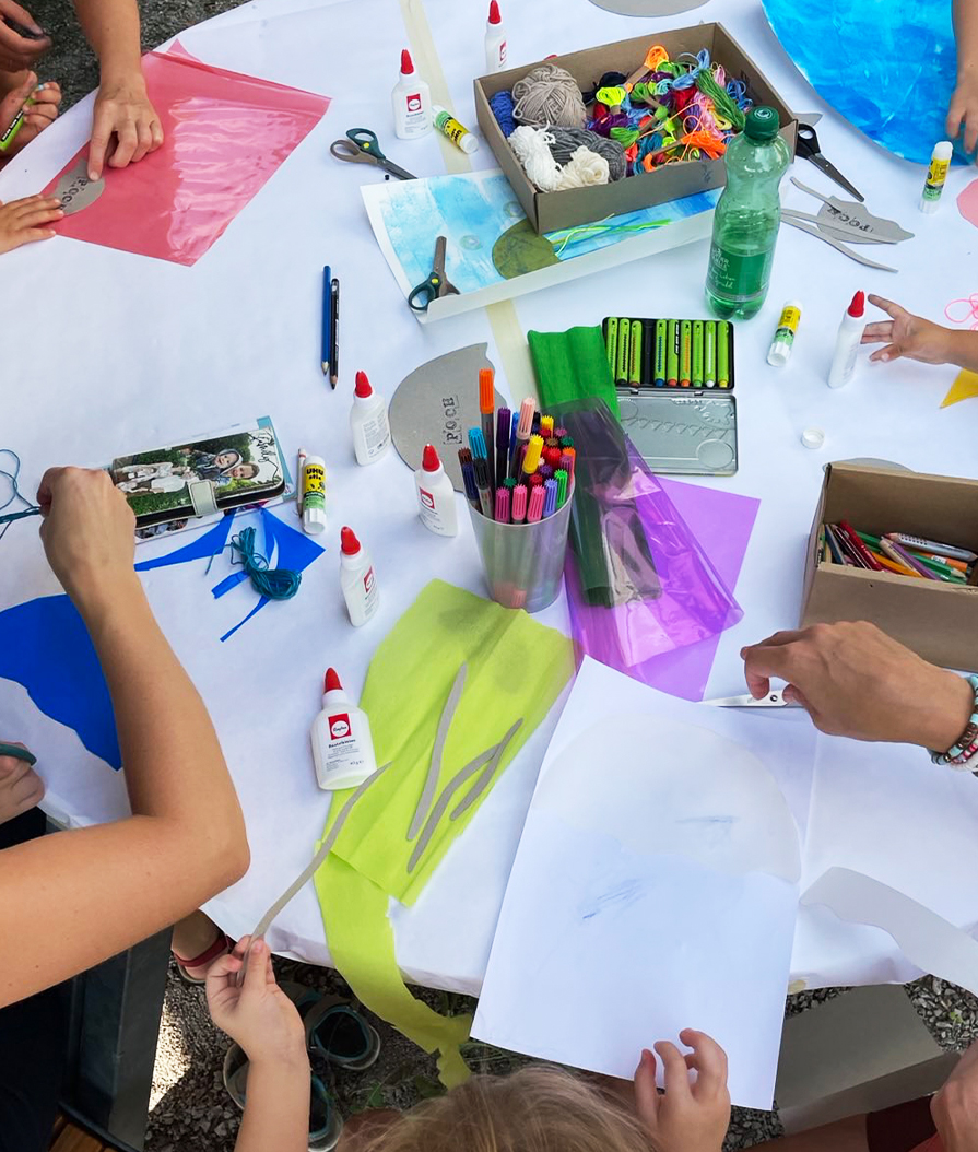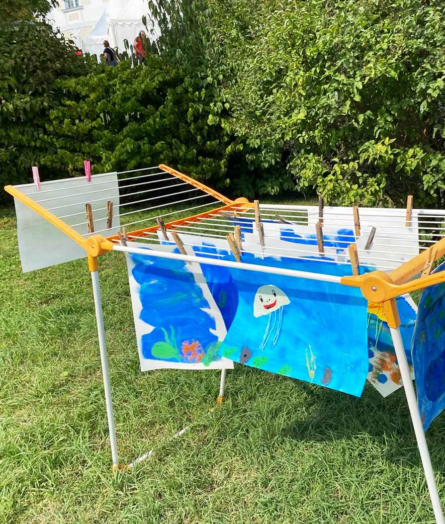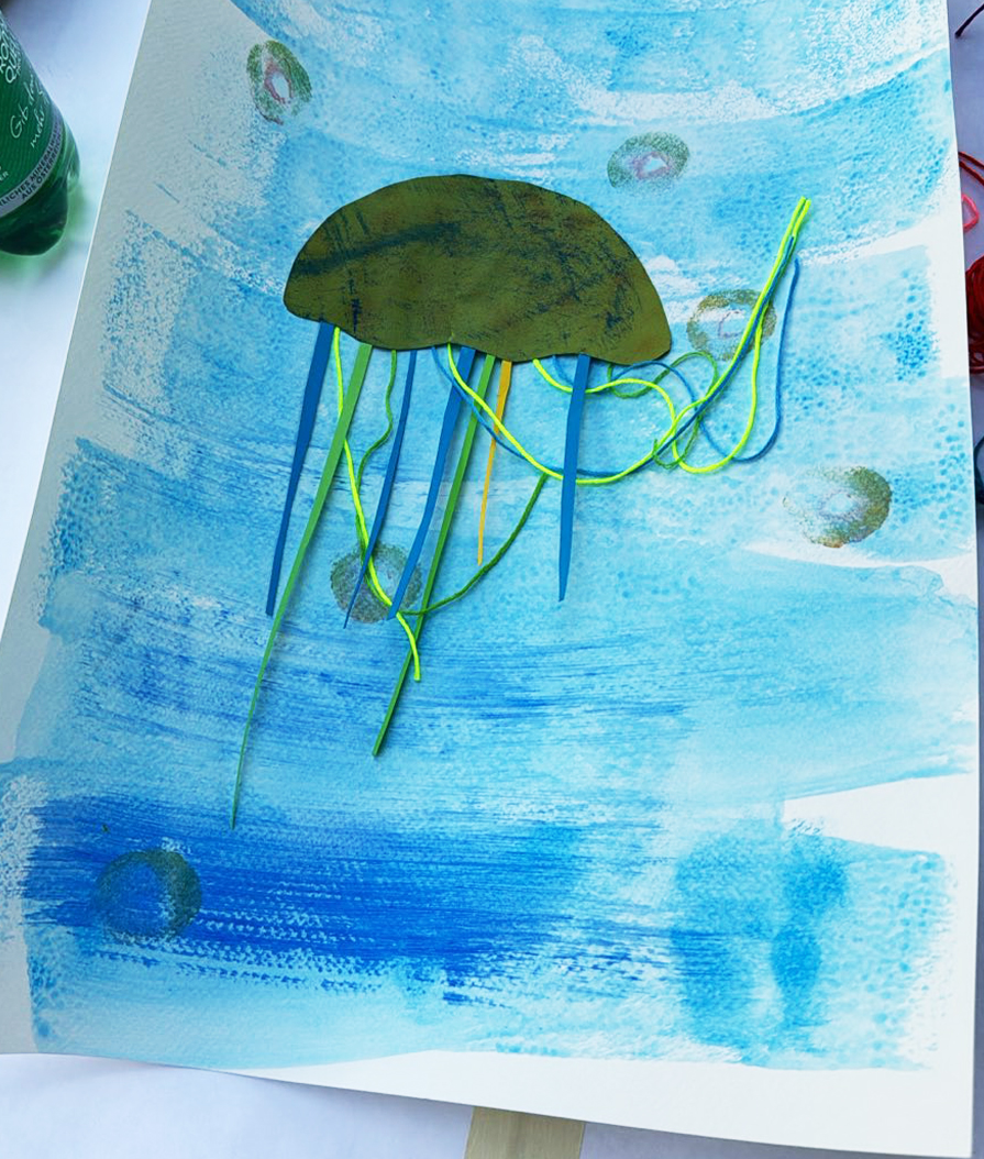 Wir zeigen die Originalillustrationen aus Papier, erzählen die Geschichte hinter dem Buch und laden die Kinder anschließend ein, selbst Quallen- und Meeresbilder zu gestalten.